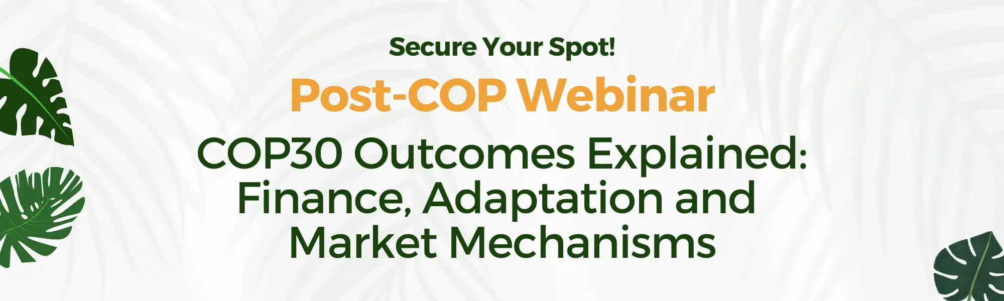 Right after COP30 wraps up, we’re bringing you exclusive insights on the key outcomes that matter most to you—finance, adaptation, and market mechanisms. This is your chance to get an insider’s breakdown of what’s been decided and how it will impact the global climate landscape. Why You Should Register: Be the First to Know: Get