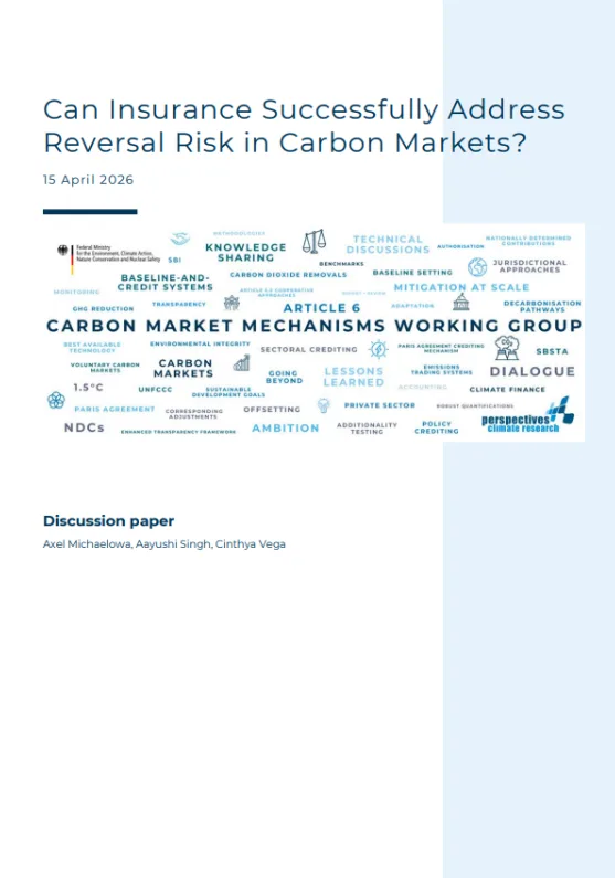 This paper examines whether insurance can credibly address the shortcomings of existing reversal mechanisms. Drawing on lessons from property insurance against wildfire risk and the World Bank Group’s CDM-era products, it identifies the key design features and limitations that will determine whether insurance can meaningfully contribute to managing reversal risk. The paper also reflects insights from the CMM-WG workshop held on 12 March 2026, which convened insurers, programme experts, and policymakers to debate the path forward.